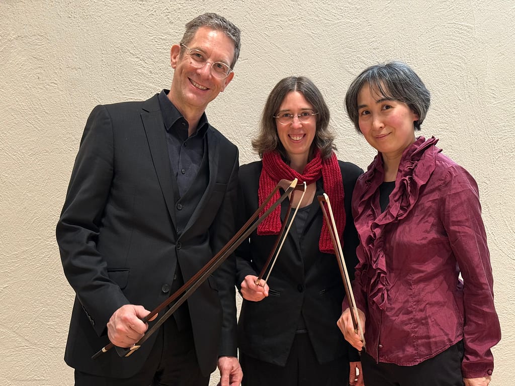 Tre Archi – Drei Bögen – das sind Kaoru Minamiguchi (Geige / Bratsche), Hanna Hesse (Cello) und Peter Falk (Kontrabass). Die drei vereint nicht nur ihre Leidenschaft für Musik, sondern auch ihre Erfahrung als Musikpädagogen. Zeitweise unterrichteten sie alle an der gleichen Musikschule, haben sich dort zusammengefunden und musizieren nun als Trio. Ihre langjährige Erfahrung und ihr breites musikalisches Repertoire versprechen ein einzigartiges Konzerterlebnis, das die Zuhörer mitreißt und begeistert. Mit virtuoser Technik, leideschaftlichem Spiel und harmonischem Zusammenspiel bringen sie die Musik zum Leben.